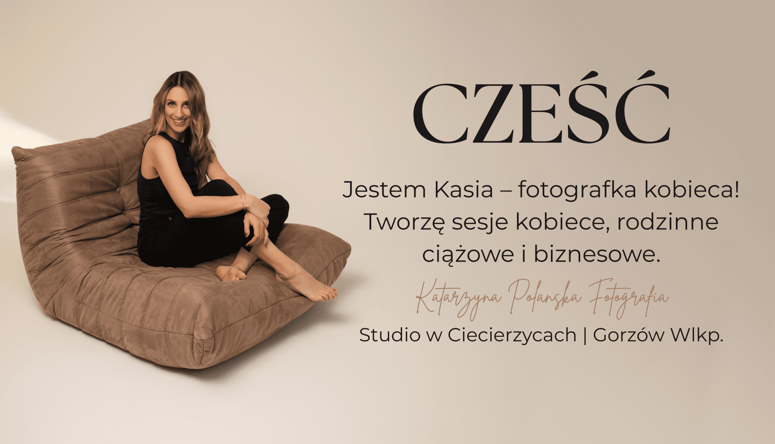 Jestem Kasia, fotografka specjalizująca się w fotografii kobiecej, ciążowej i biznesowo-wizerunkowej. W moim studio w Ciecierzycach niedaleko Gorzowa Wielkopolskiego tworzę zdjęcia, które nie tylko pięknie wyglądają, ale przede wszystkim opowiadają Twoją historię i pokazują Twoją siłę. Wierzę, że każda kobieta jest fotogeniczna – niezależnie od wieku, figury czy doświadczenia przed obiektywem.
